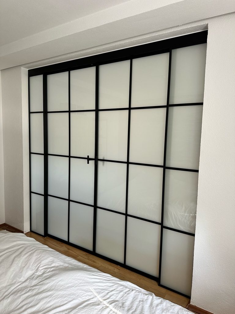 Doppelte Milchglas-Schiebetür mit Fixteilen zum Schlafzimmer – Projekt in Wuppertal